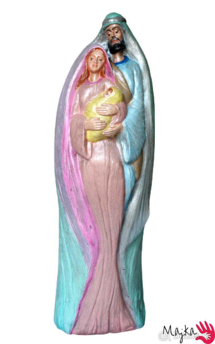 Svätá rodina - [5.3. 2026]Socha je odliata zo sádry, penetrovaná, natretá akrylovou farbou a prelakovaná. Je vhodná iba do interiéru.
