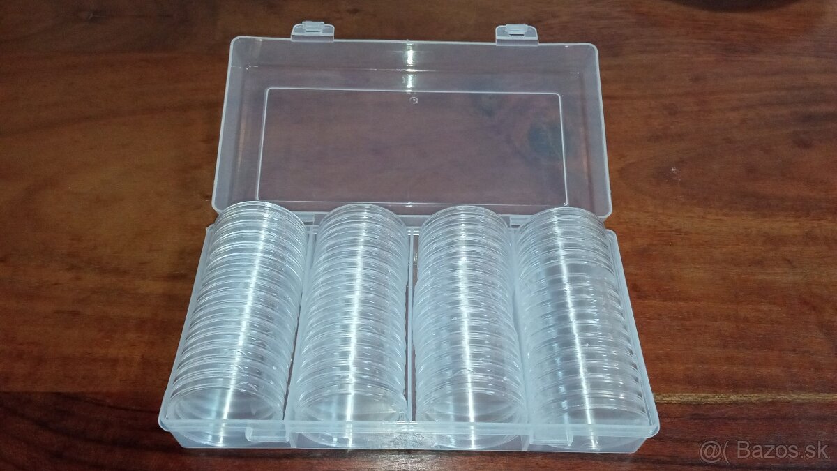 Priehladna etuja na strieborne investicne mince, plastovy box na mince, organizer na mince, kapsuly/bubliny na striebrorne/zlate investicne mince.