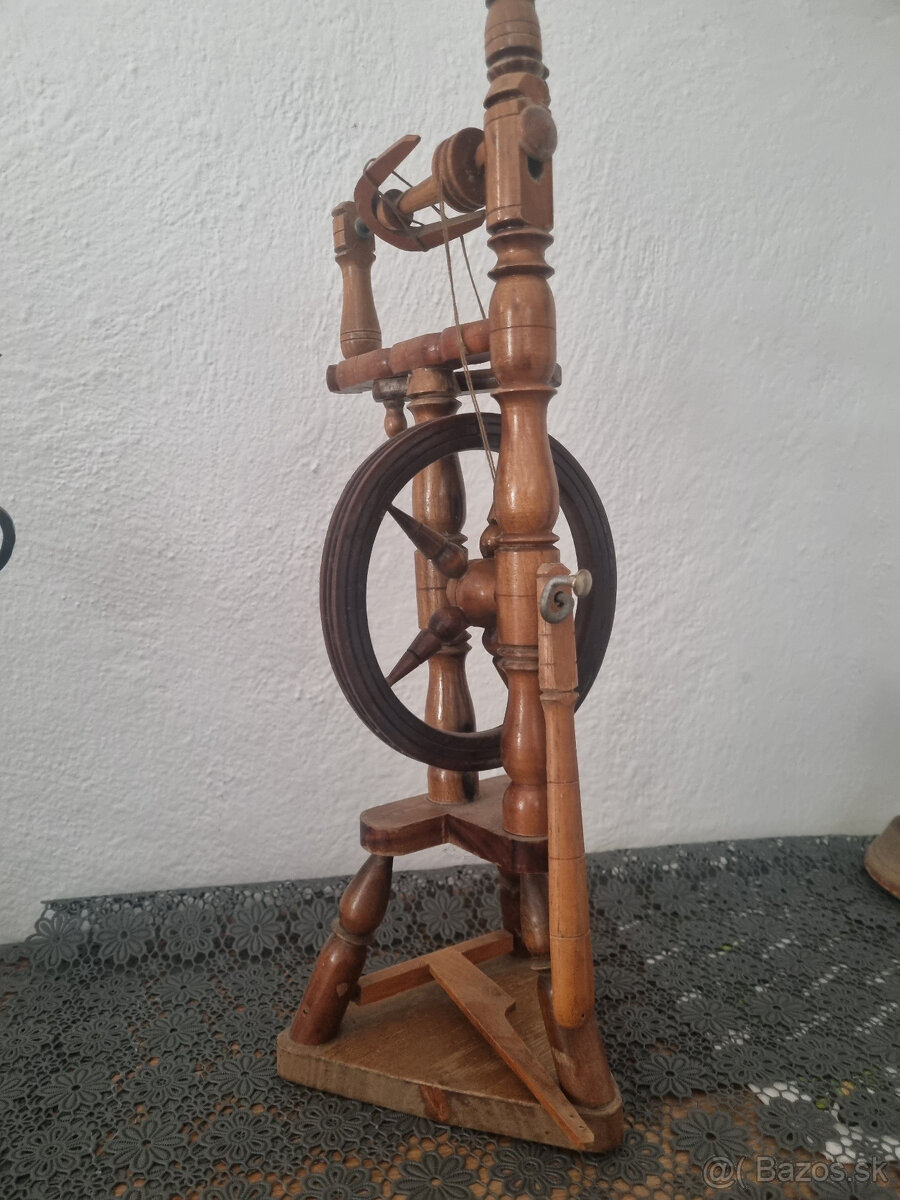 Starožitný kolovrátok s praslicou-historický kusok - [1.2. 2026]Predám funkčný,zachovalý, historický kolovrátok s praslicou/ Vid foto/Na Slovensku sa používal od 14.do polovice 20. storočia. Služil na pradenie,skrucanie surových vlákien ako /konope,lan,vlna/do nití a navíjanie na cievku. Výška kolovrátka 95cm,výška praslice 131cm. Praslica je prísadná, vyrezávan ...