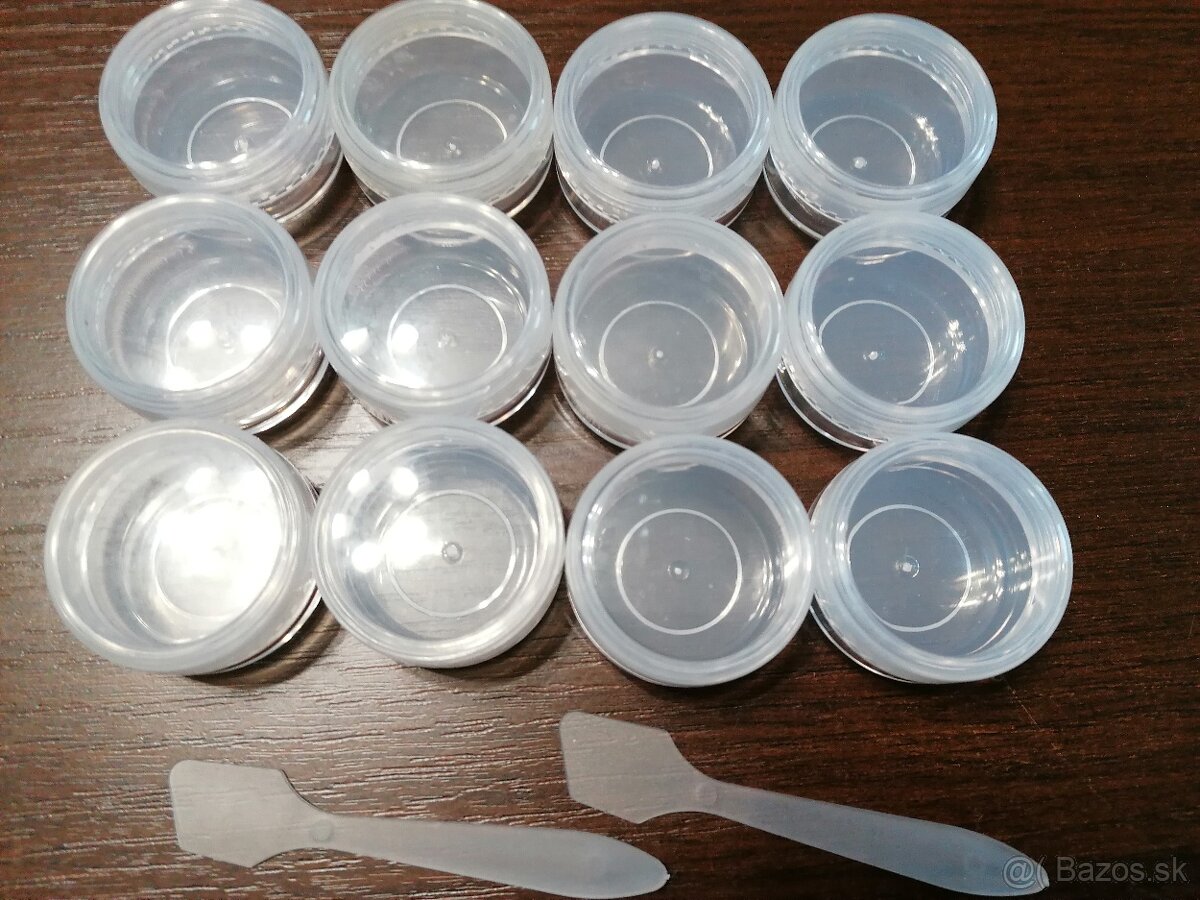 •12 ks plastových nádobiek so skrutkovacím viečkom