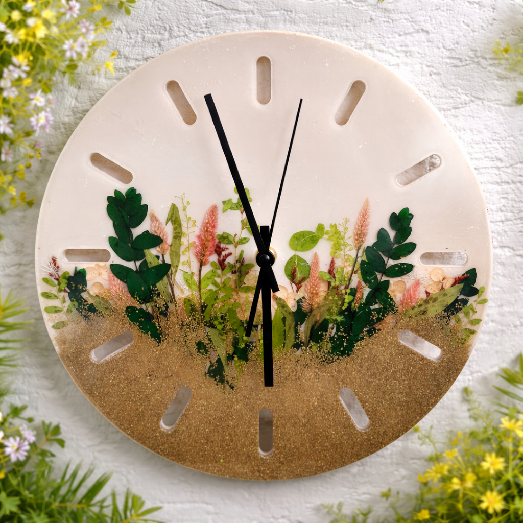 Epoxidové hodiny so sušenými kvetmi