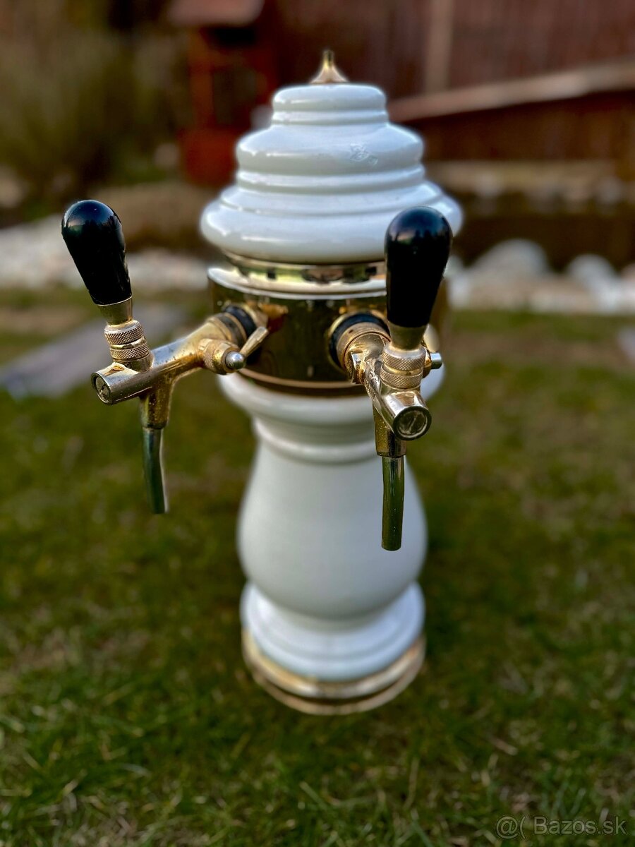 Keramická piva na pivo s príslušenstvom a dvoma kohútmi. Výčap, výčapné zariadenie.