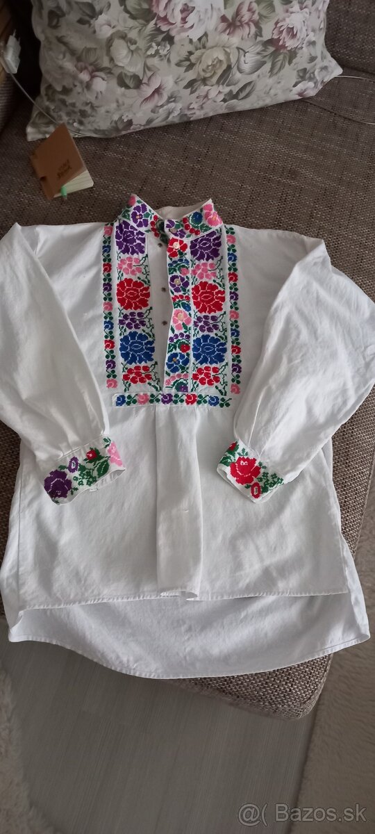 Predám krásnu vyšívanú košelu v dosť dobrom stave..vypratá, okolo krku trochu zažltnutá od nosenia, ale tak má minimálne 60 rokov, neviem presne, skôr pre chlapca alebo chudého muža, cena bez pošty.