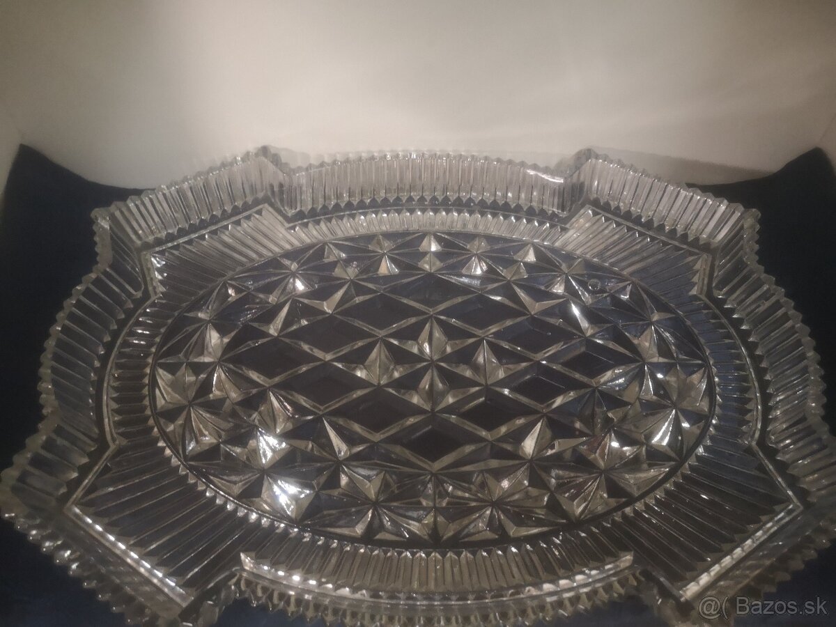 Starý, retro podnos/tácka. Hrubé, číre sklo, bez oťukov, jedna bublinka v skle /viď foto/. Tácka je veľká a ťažká 1,960 kg. Rozmery: 36 cm x 27 cm.