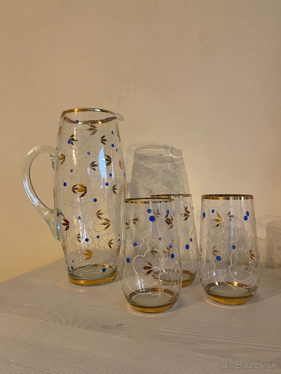 Predám krásny ozdobný pozlatený sklenený set - krčah + 3 poháre. Bez poškodenia. Len vystavené. Osobný odber možný v KE. Ak máte záujem o kúpu rôznych starožitností pozrite si aj moje ostatné inzeráty.