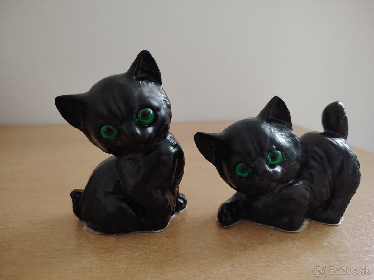 Sú to figúrky mačiatok s výraznými zelenými očami.