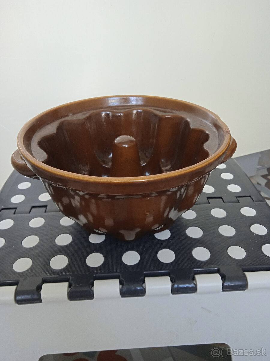 keramicka, priemer 18 cm, vyska 9 cm na hornom okraji trochu odlupnuta, inak plne funkcna, nevyuzita