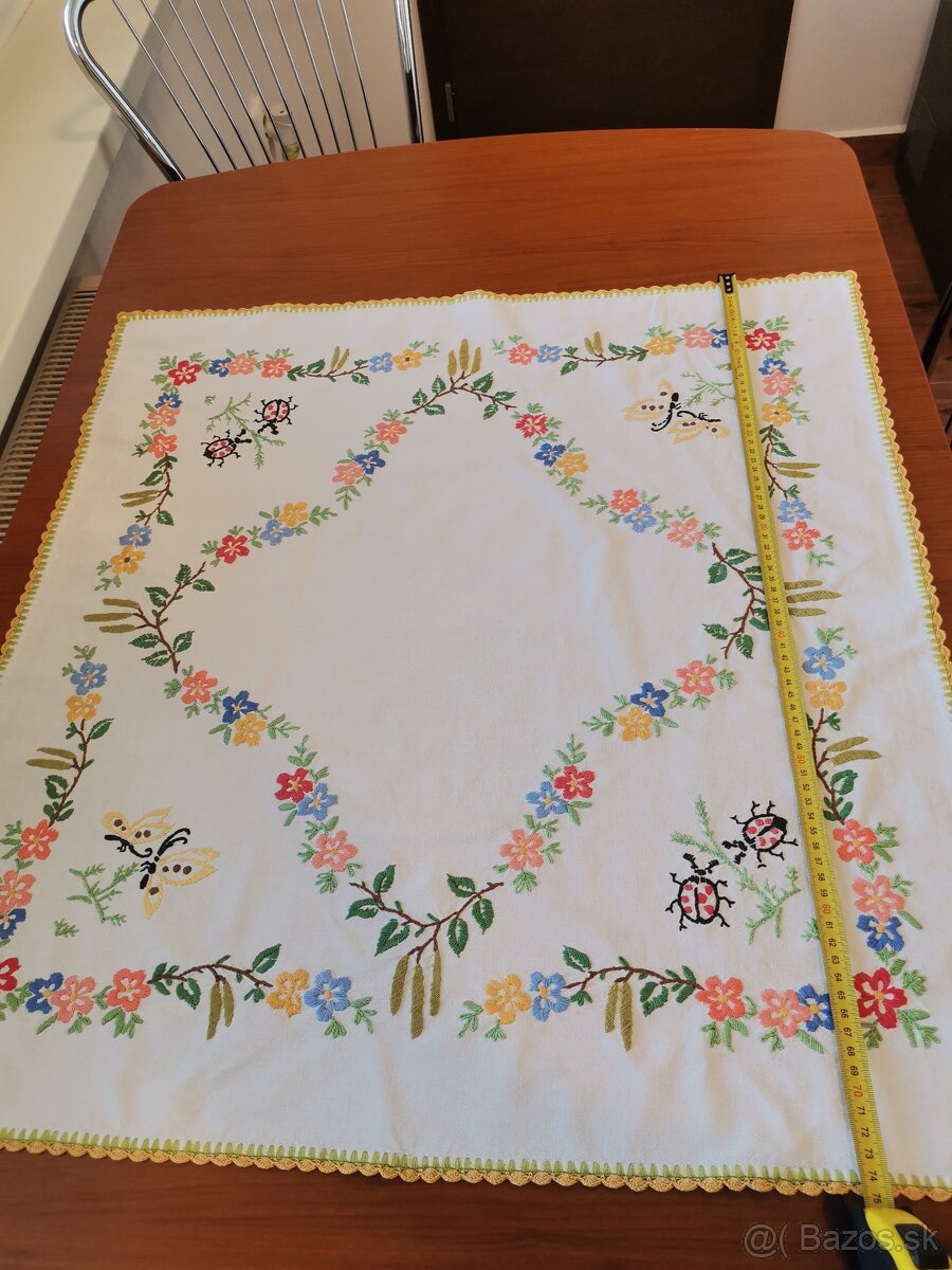 Ahojte predám ručne vyšívaný obrus. 75x71cm. Veľmi pekne opracovany. Ľudové motívy. Môžem zaslať aj na dobierku alebo osobne v Martine.