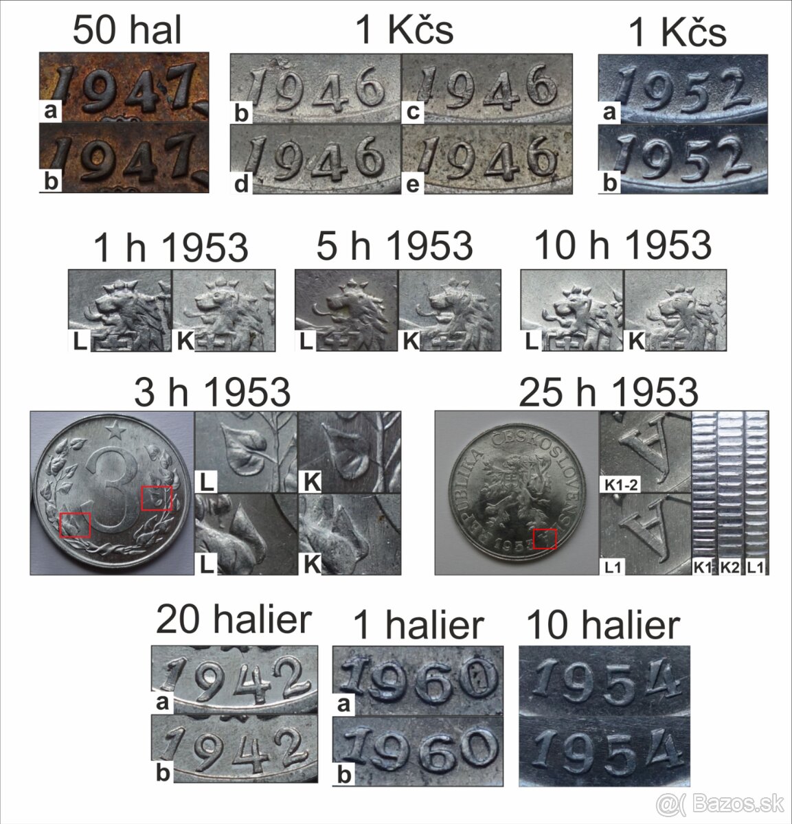 Československo ČSR ČSSR ČSFR SR mince - varianty mincí