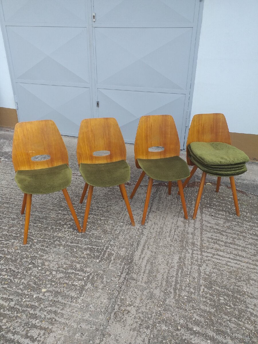 Predam 4 ks stolicky od autora frantiska jiraka su v povodnom zachovalom stave + 4 ks podsedakov, vsetko spolu 120 eur, osobny odber