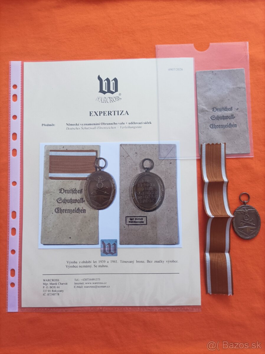 Německé vyznamenání Obraného valu, krásný stav, dlouhá stuha.