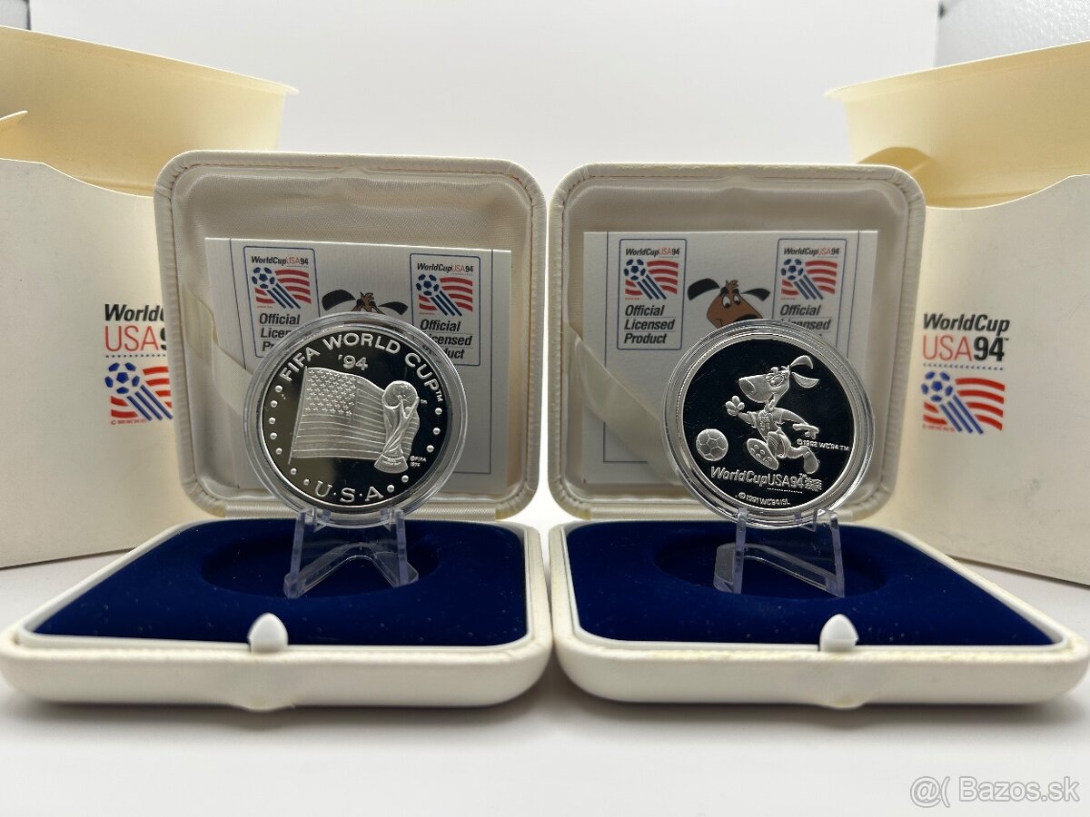Ponúkam na predaj investičné strieborné mince v pôvodných obaloch (vzácnosť). Každá je číslovaná vlastným sériovým číslom a váži 1 oz =31,1g čistého striebra. Mince venované FIFA svetovému poháru v USA 1994 - ide o oficiálny licencovaný produkt. Certifikát samozrejmosťou. Cena 119€/kus/dohoda. Mám aj iné investičné a zberateľské mince na predaj, pozri môj profil. Kľudne ma kontaktujte cez tel číslo +421 903 480 776 (najlepšie whattsapp) alebo mail: m.repka99@icloud.com