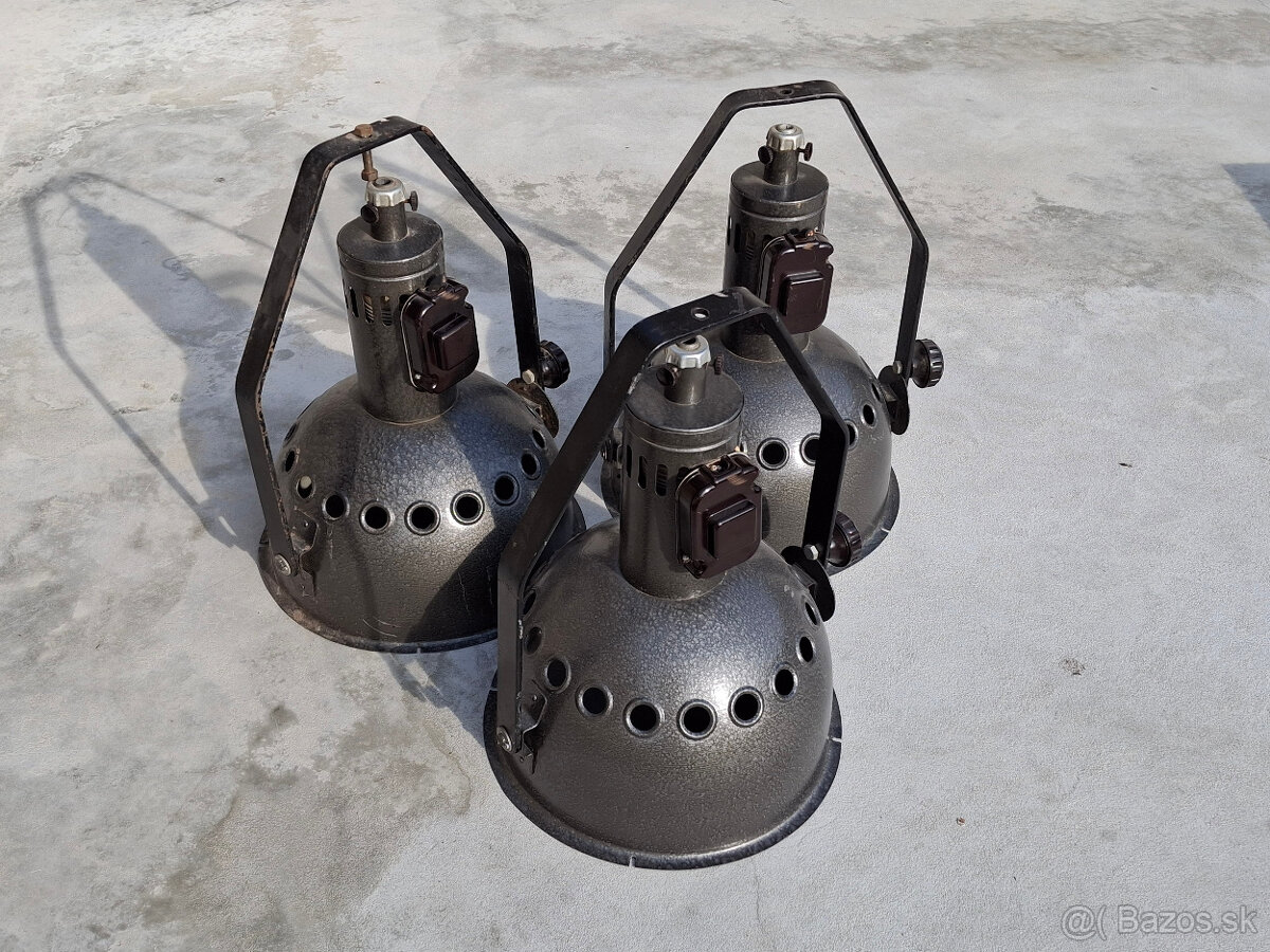 3 ks. industriálne závesné svietidlá - výška 45 cm priemer 31,5 + 3x keramická redukcia