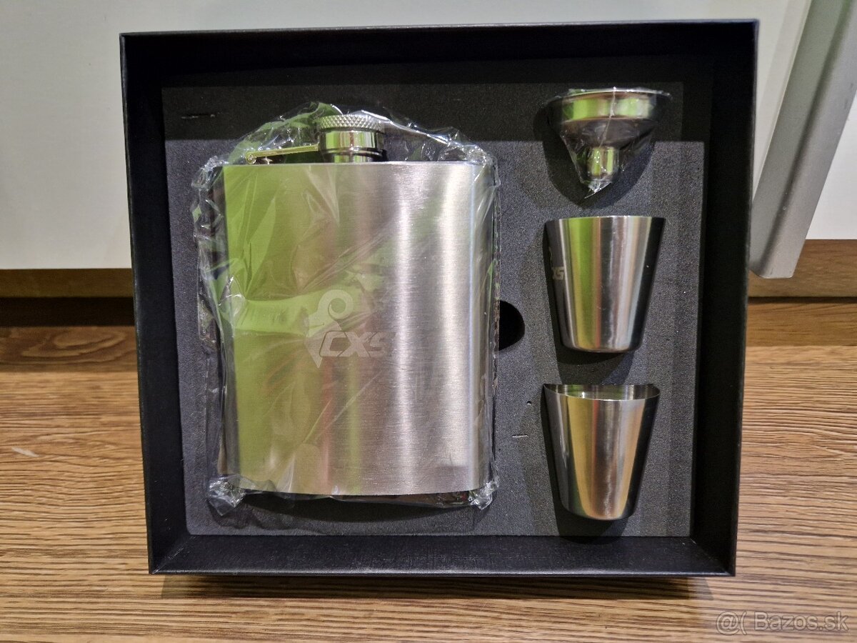 Predam v darcekovom baleni ploskacku s poharikmi nove,nepoužívané. Vhodne aj ako darček.Cena pevna 10€+postovne