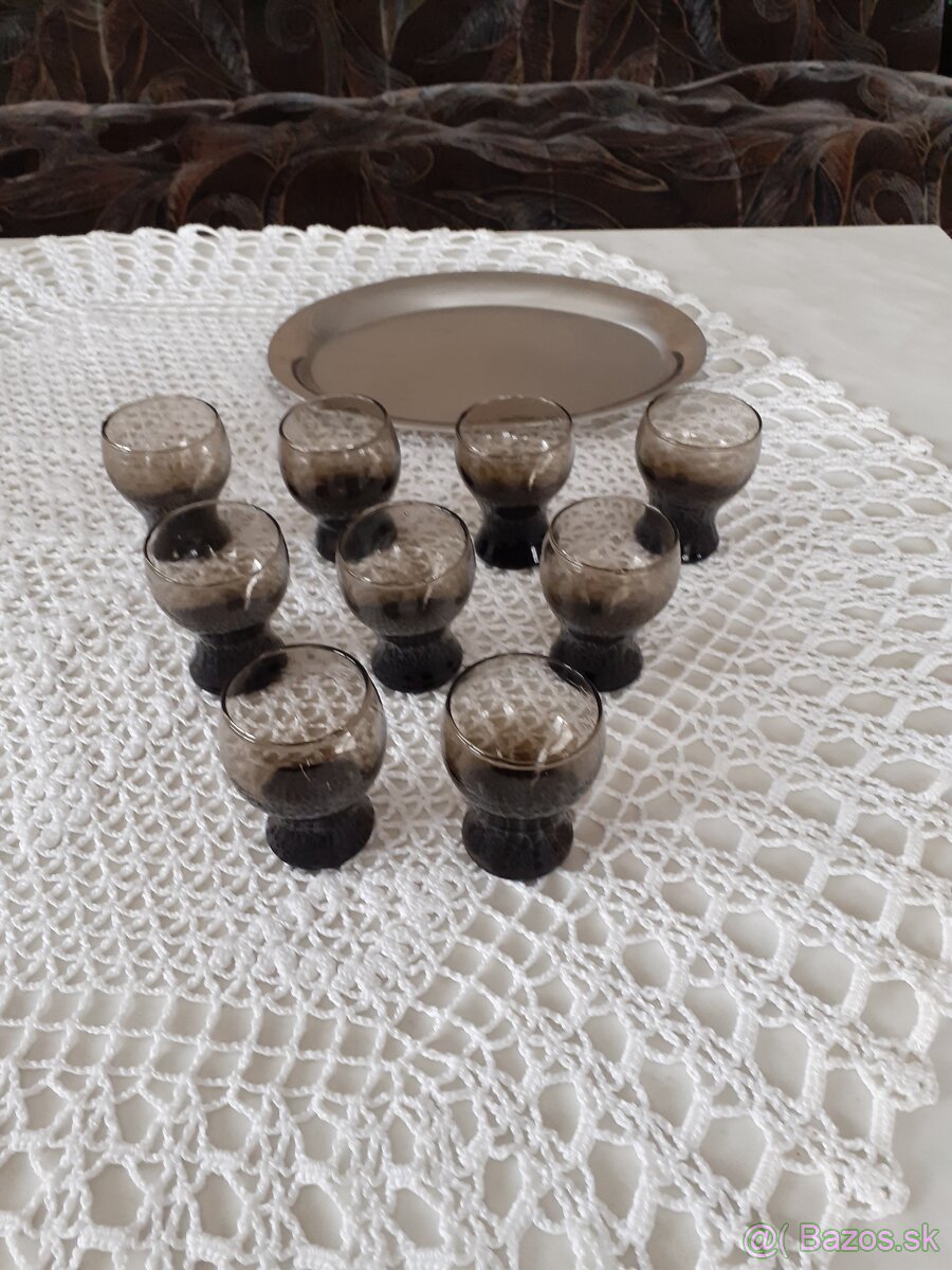 Karafa s pohárikmi - [8.3. 2026]Predám maľovanú karafu s pohárikmi v zachovalom stave. Niektoré poháriky majú ošúchanú farbu.