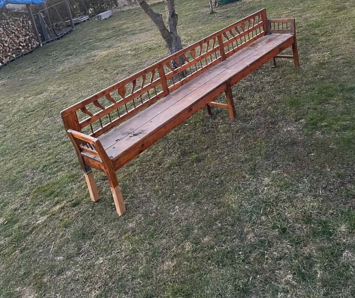 Predám starožitnú drevenú lavicu s dĺžkou 3,5m.