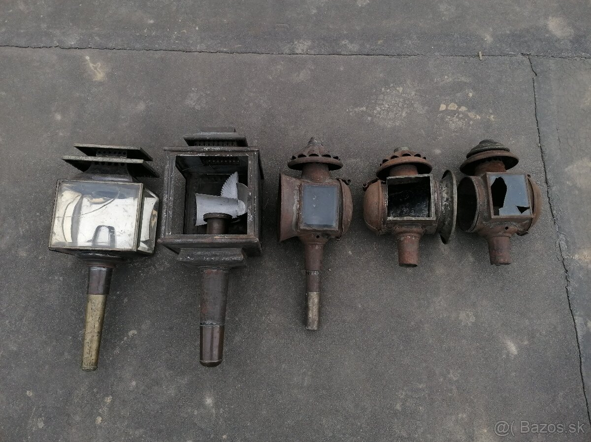 Predám starožitné svetlá na voz- koč, svetlo. Cena za všetkých 5ks spolu je 75€.