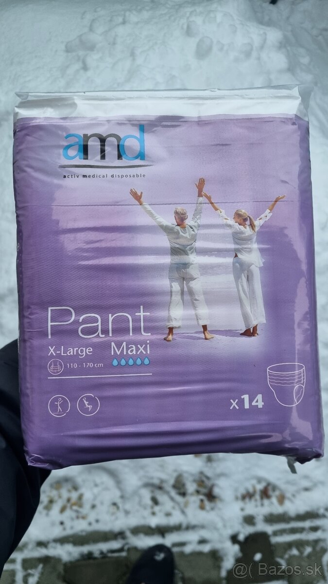 Predám plienky pre dospelých/seniorov značky amd veľkosť xl,mam 8 balikov,v jednom je 14ks cena za balík 5e
