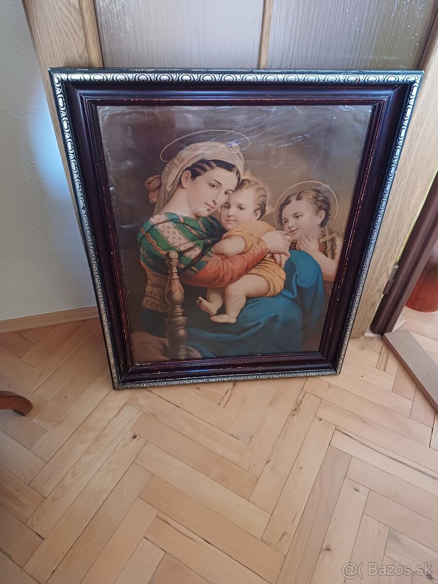 Predám starý obraz, na plátne rozmery 80x70 (v-š) Rafaelova Madona s dieťaťom malým. Sv.Jánom. Cena 10 €. Preferujem len osobný odber!!!!! A platbu v hotovosti. Nič NEPOSIELAM!!!! Volať tč. +420 775091365 Ružomberok.