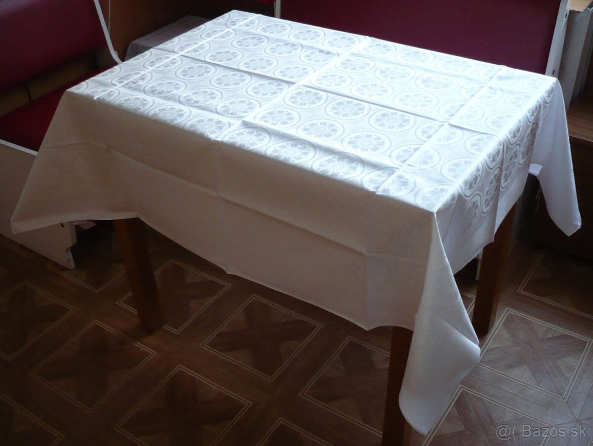 biely damaškový obrus 120x140cm,nebol ešte použitý,cena 9e