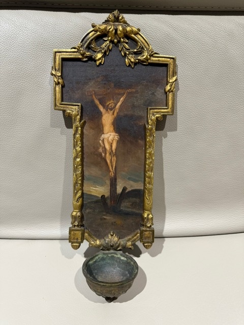 Predám kropeničku s maľbou Ježiša a s ozdobnými mosadznými prvkami