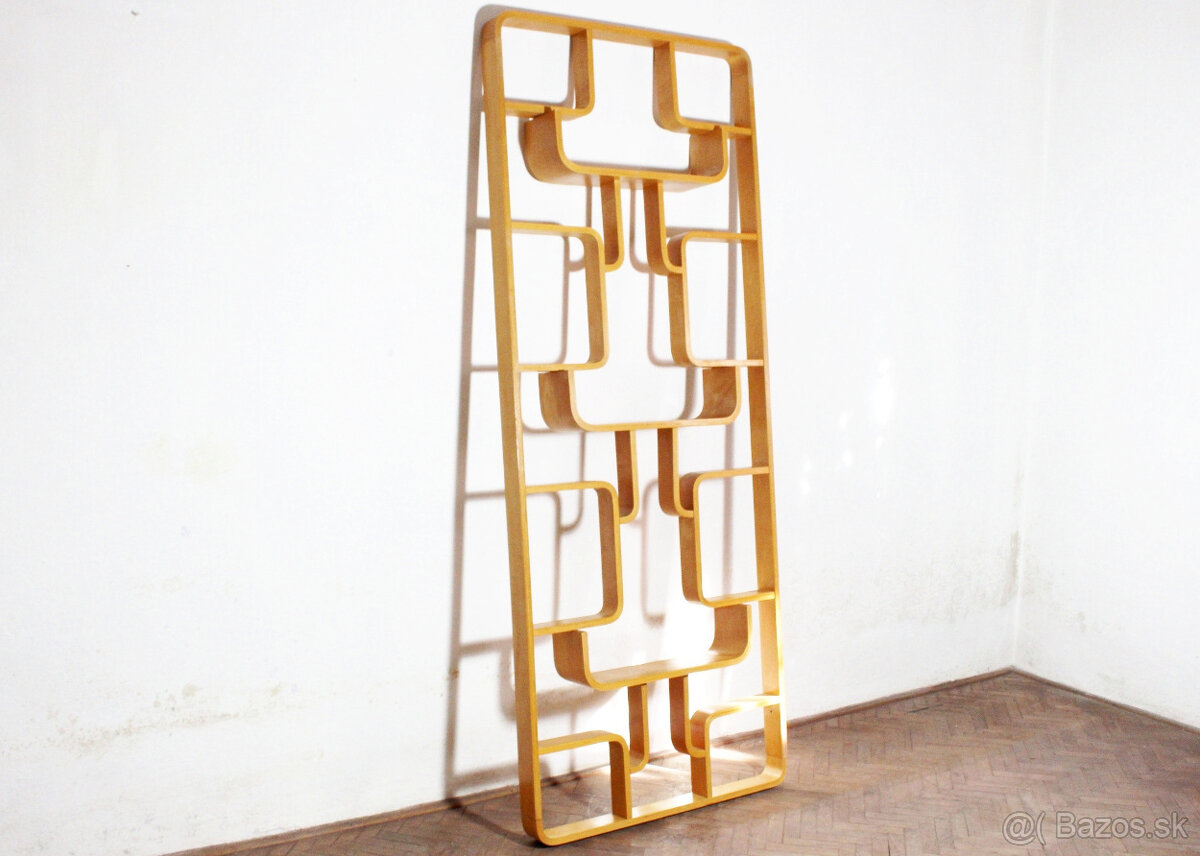 ponúkam na predaj retro deliacu stenu,navrhnutú Ludvíkom Volákom okolo roku 1970 pre firmu Drevopodnik Holešov.stena je v dobrom pôvodnom stave,potrebná ľahká renovácia povrchovej úpravy a zatmelenie dvoch dierok na stene a dvoch na nožičkách.výška jedného páru nožičiek je 20,5 cm a výška druhého páru je 17,5 cm.rozmery steny bez nožičiek sú: výška 225 cm,šírka 90 cm a hĺbka 16 cm.osobné prevzatie v okrese Topoľčany.na prípadné dotazy rád zodpoviem.prosím píšte na e-mail.ďakujem