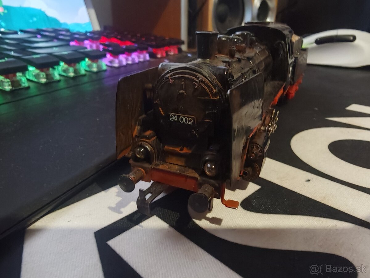 DR parná lokomotíva BR24 002 GUTZOLD H0 (funkčná, no vhodná na renováciu, prípojný vagón viď foto).