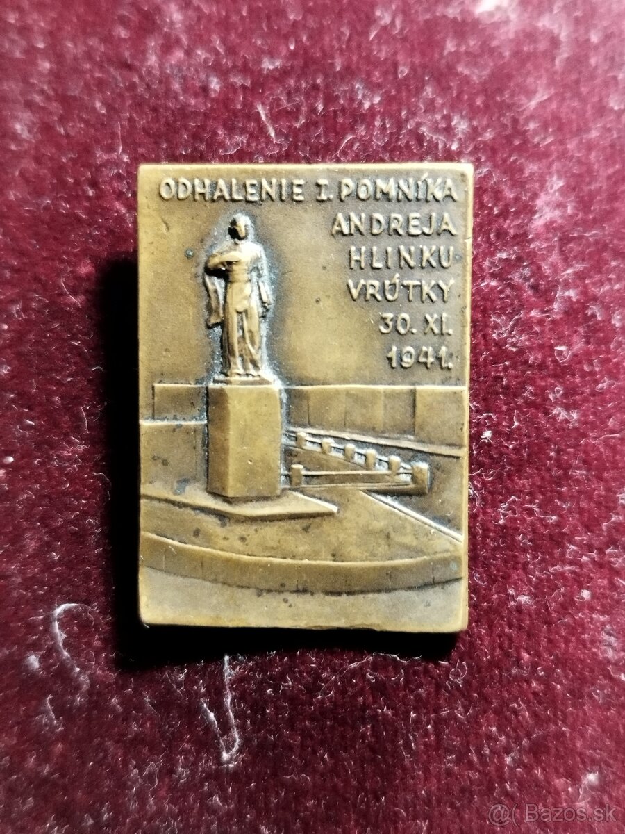 Ponúkam na predaj odznak z obdobia slovenského štátu. Odhalenie pomníku A. Hlinku vo Vrútkach