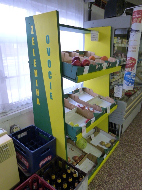 Predám regál na ovocie a zeleninu na foto so zrušenej predajne potravín. Zachovalý vhodný na predaj ovocia zeleniny vo farbe žlto zelený Cena 100.-€