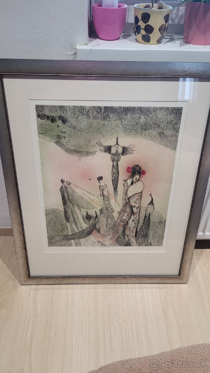 Predam obraz „V údolí nádeje a fantázie“ - ručne kolorovaný lept. Zarámovaný v krásnom patinovanom ráme. Podpísany, 1/1. Len osobny odber Bratislava