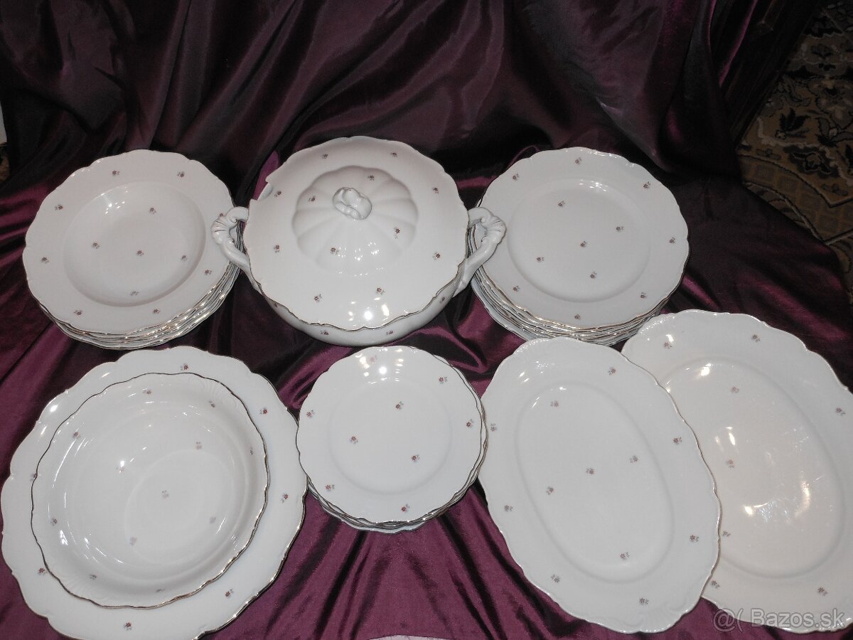 Predam starsi znac.porcel.supravu,v pouzivanom zachov.stave-niekde uz menej viditelna zlata linka,prip.cierne bodky na tanieroch(z vyroby)miska povrchova prasklina,,niekde aj menej viditelny vzor,...cena 65 eur,len osobne,neposielam postou