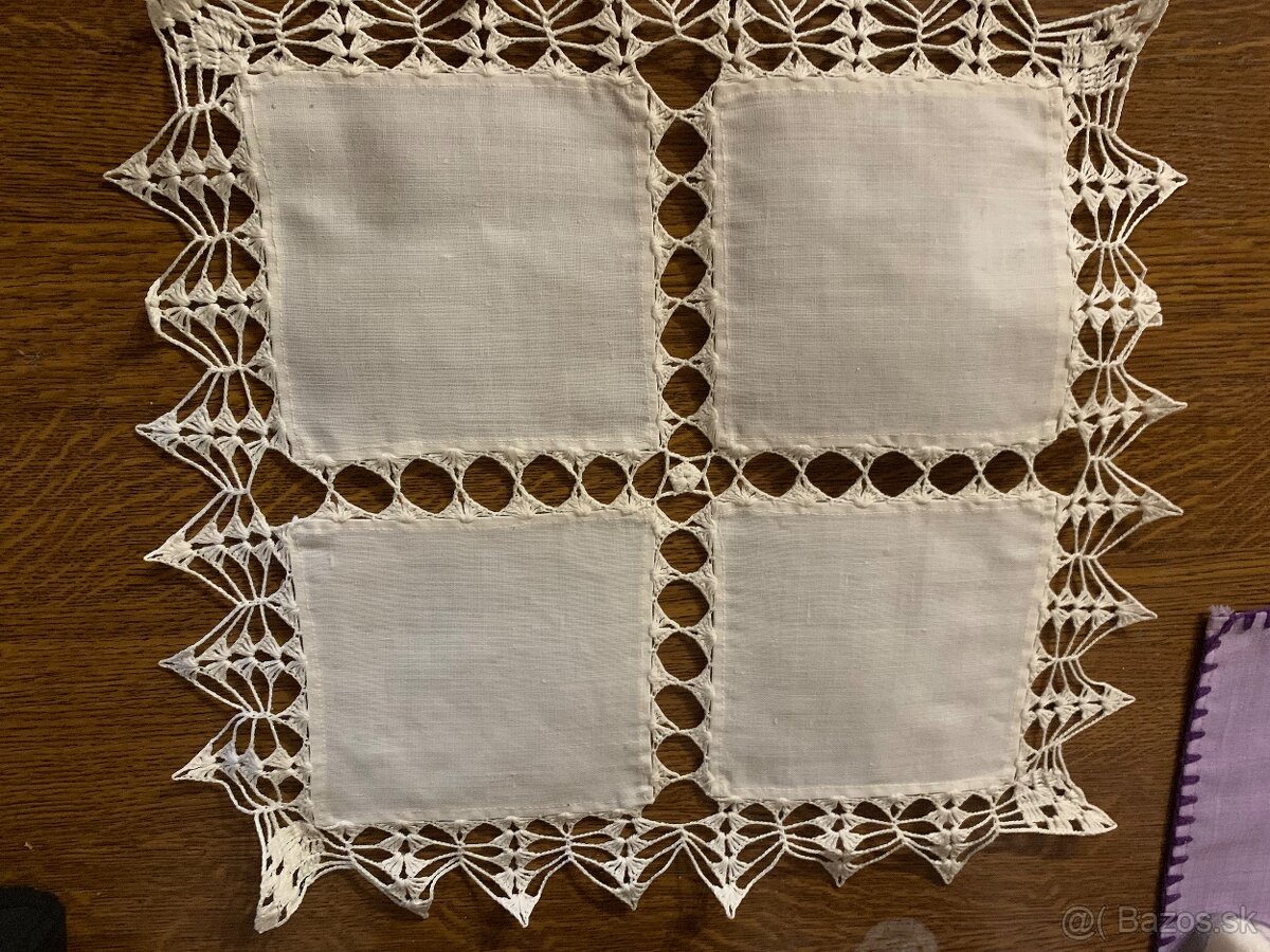 Výšívané dečky - [3.3. 2026]Vyšívané dečky, obhačkované : 3x 20x20cm, a 1x 30x30cm aj do kúpelne....