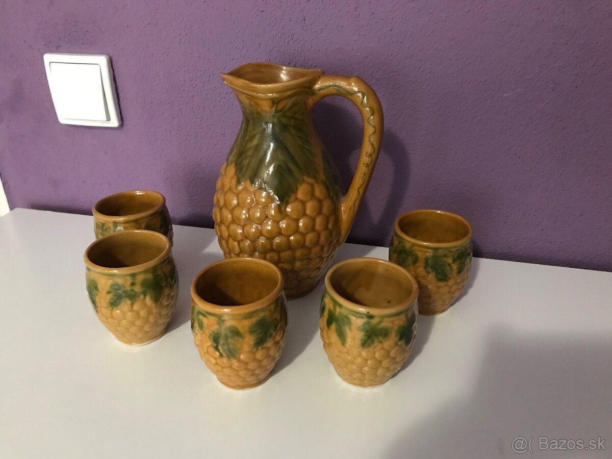 Predam peknu keramicku sadu s motivom hrozna - dzbanik a 5 poharikov. Cena uvedena za komplet.