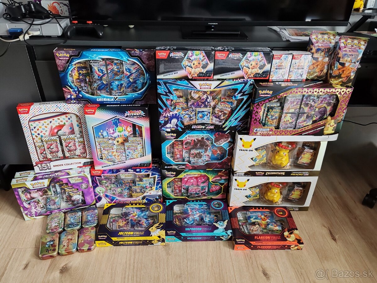 Ide o zaujímavé produkty, ako napríklad pokémon 151, prismatic evolutions, celebrations, crown zenith. Blastoise, Venusaur, vaporeon, jolteon a flareon boxy.