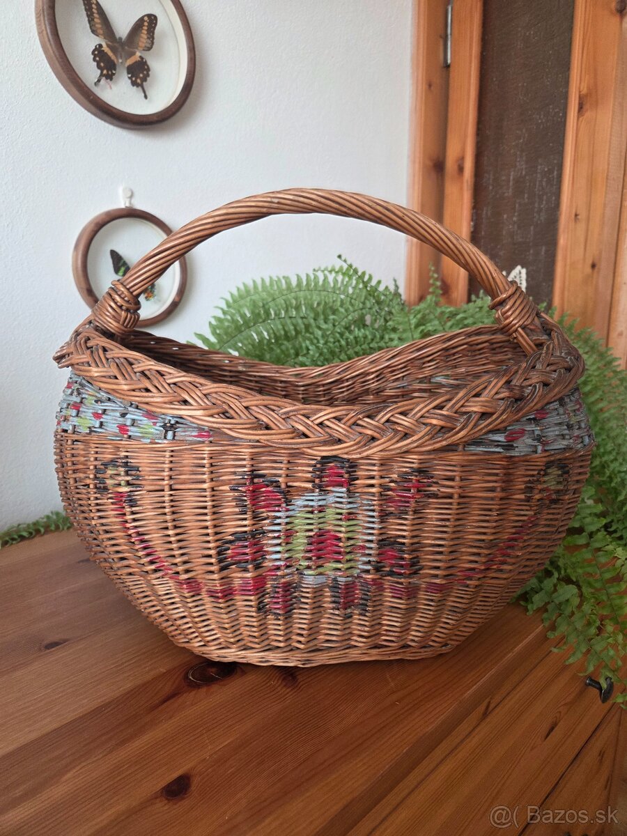 Ponúkam na dekoráciu starožitný maľovaný prútený košík. Rozmer 42 x 38 x 22 cm. Pekný stav. Cena 23,00€+ pošta