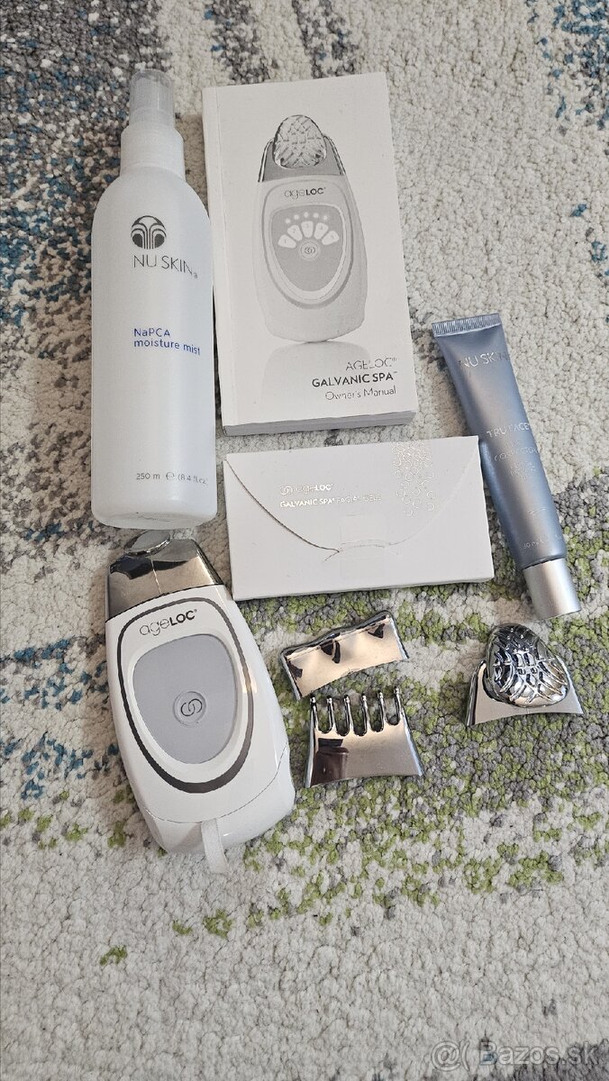 Predam set nuskin galvanic spa, pristoj a 4 nastavce, mist, 4x facial serum a peptide redifing gel a navod. Pouzite 2x. Galvanická žehlička využíva samonastaviteľný galvanický prúd často používaný v profesionálnych wellness centrách, ktorý pomáha zabezpečiť vstrebávanie zložiek proti starnutiu do položky. Galvanická žehlička Nuskin ďalšími nadstavcami a doplnkovými produktmi určenými na tvár, telo a vlasovú pokožku vám tento viacúčelový domáci kozmetický prístroj.