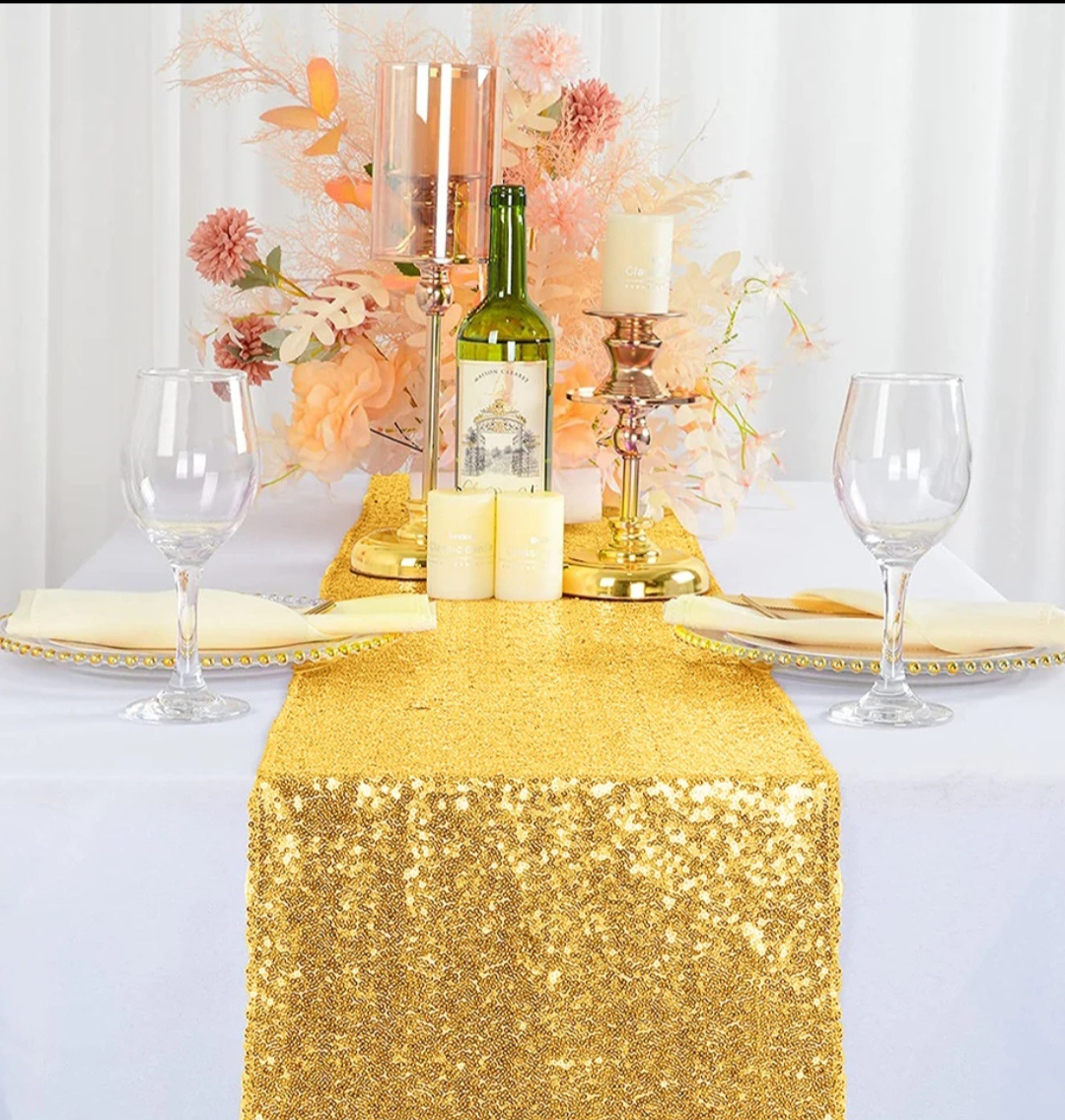 Predám 10ks luxusných zlatých behúňov na stôl. Vhodné na oslavy, párty alebo svadby. Rozmer 30*275cm. Predávam iba komplet balenie.