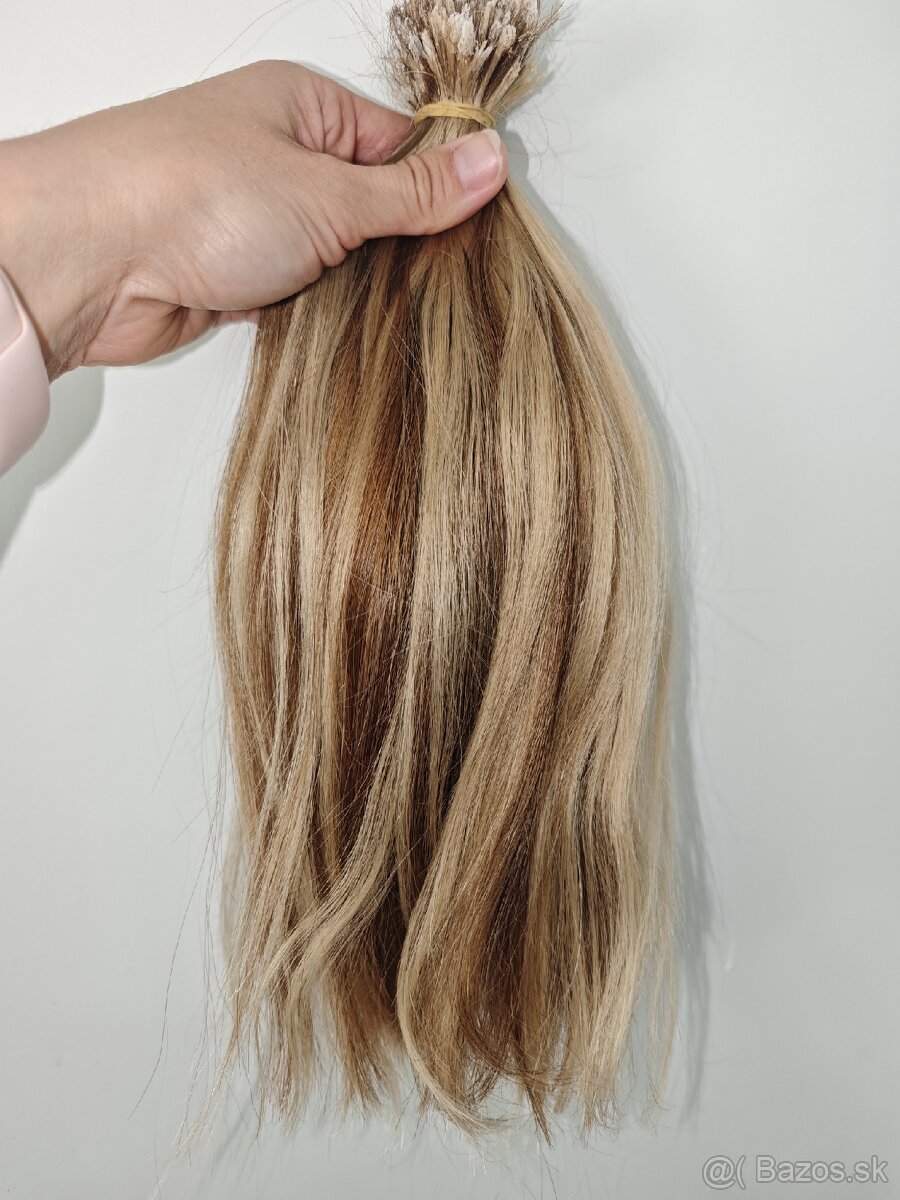 Vlasy na predĺženie po zákaznícke,použité boli 1x, perfektný stav, váha 88g, 30cm, melirovane, cena 140€