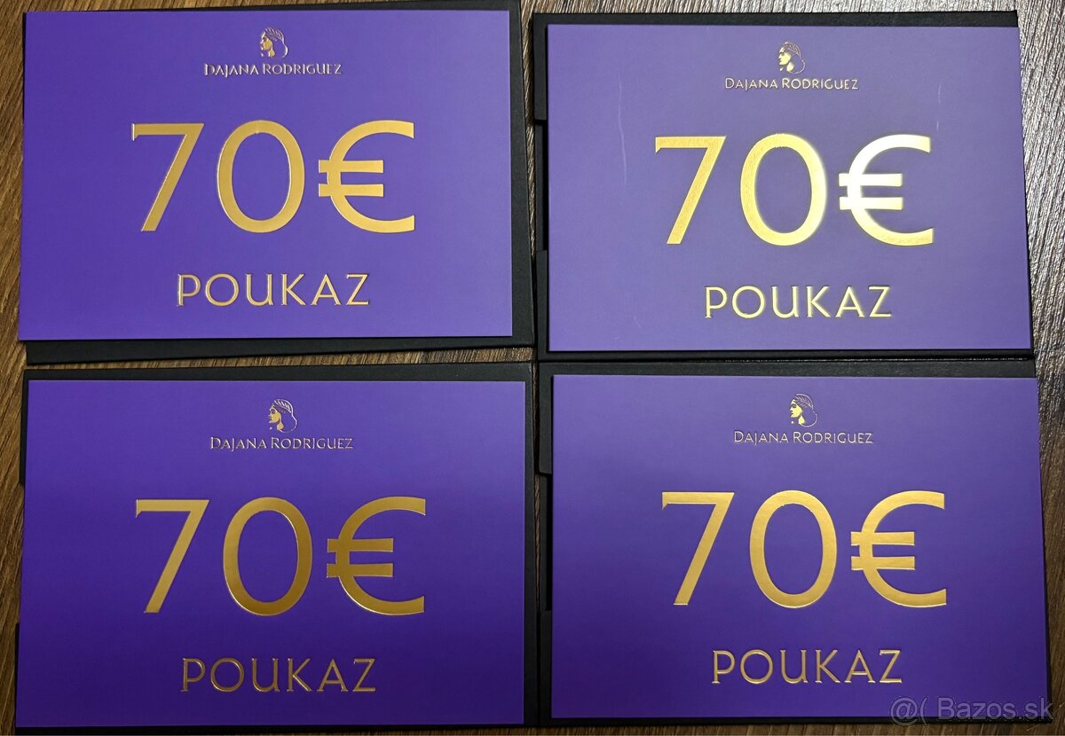 Darujem poukazy od Dajana Rodriguez. Zlava 70€ pri nakupe nad 160€. Staci kod skopirovat a vlozit do kosika a uzit si zlavu :)