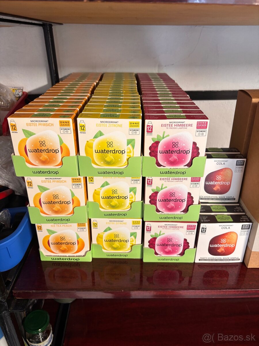 Predam rôzne chute waterdrop ice tea citron, ice tea broskyňa, ice tea himberee, cola. Sklenené flaše na vodu 600ml 2x, sklenené flaše na vodu 1000ml 2x, termo flaša 600ml 1x. Keby ste mali hocijakú otázku ohľadom produktov, kludne sa pýtajte. Z vlastnej skúsenosti viem odporučiť každu príchuť.