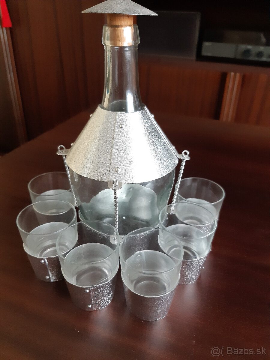 Ponúkam peknú nepoužívanú likérovú súpravu, strieborné zdobenie. Fľaša s obj. 0,5dl a výška 20cm, 6 pohárikov 0,5dl, výška 5,5cm