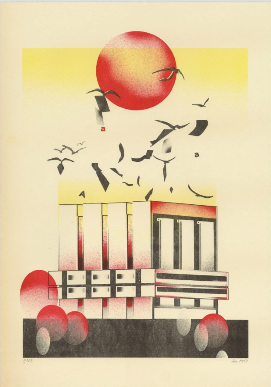 Trezor dokumentov slovenskej histórie. Monument od Vladimíra Dedečka vznikol v roku 1983 v Bratislave na kopci, ktorý dôverne poznal. Predstavoval si, že vytvorí niečo ako egyptskú mastabu: pribudnú ďalšie stavby a vysadia 2000 borovíc. Lenže na nič z toho nezostali peniaze. Zadanie znelo navrhnúť ikonickú budovu, ktorá ochráni dokumenty pred ohňom, vodou, krádežami — a pred vojnou. Architekt Dedeček bol až druhý v poradí, kto sa úlohy zhostil. Prvým bol Tibor Gebauer v ateliéri Iľju Skočeka, kde vznikol aj Istropolis. Jeho návrh bol taký zložitý, že nevedeli nájsť stavebníkov, ktorí by boli ochotní do toho ísť. Vladimír Dedeček uchopil Slovenský národný archív ako depozitár. Sú to štyri vertikály obopnuté prstencom. Budova je obložená chorvátskym pieskovcom a teda má aj Dedečkov typický farebný kontrast bielej a červenej, vďaka sklomozaike. Vnútri v depozitároch sú kovové regále Kompakt, vymyslené na mieru podľa archivárskych škatúľ vo výrobnom družstve v Levoči. Zadanie znelo, aby sa otvárali ručne po koľajniciach, a nie na počítači. Interiér navrhol Jaroslav Nemec, so vstavaným dreveným nábytkom a atypickými stolmi pre bádateľov. Nechýbala laboratórna technika na ošetrovanie dokumentov a prednášková sála. Stavba získala medzinárodnú cenu archivárov aj Čestnú légiu v Paríži. Lenže ako plynuli roky, peniaze sa míňali a na okolie už nezostalo. Vladimír Dedeček si na to spomínal takto: „Mastaba ako vrchol kopca. Ten kopec som miloval. Chodili sme sa tam objímať s Oľgou, robil som tam súťažný projekt rozhlasu a na Vysokú školu ekonomickú. Ten pozemok som mal v ruke. Okolo mali byť ďalšie stavby: Jendrejákovo kultúrne centrum a rekreačný hotel aj školské stredisko — vo výške prstenca. A zeleň, navrhoval som vysadiť stromy. Projekt výsadby 2000 borovíc robil Glaus.“ Grafika je vytlačená na papieri, ktorý ležal niekoľko rokov v zatvorených tlačiarňach. Knižný papier je miestami splesnivený, miestami ohlodaný zubom času.