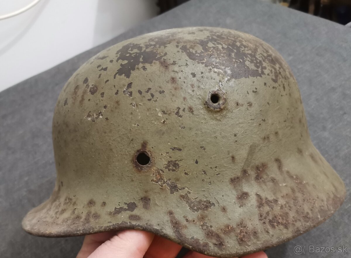 Nemecka prilba M40 - [12.3. 2026]Mám na predaj, original M40, z 2.sv vojny.Velkosť okolo 60.Cena 90eu,plus 3,50poštovné.Píšťe len mail. ww2, wehrmacht
