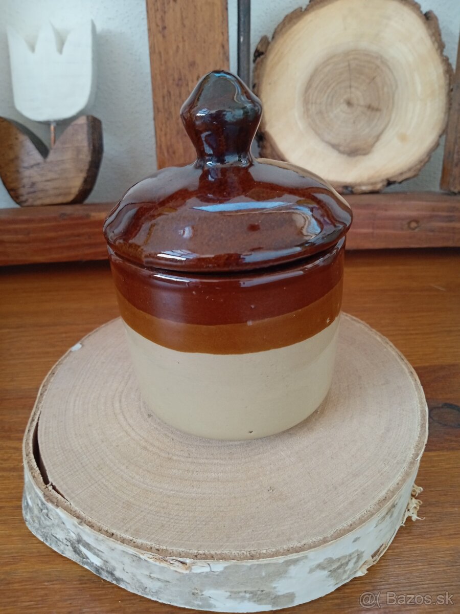 Malá vintage keramická dózička s vrchnákom.