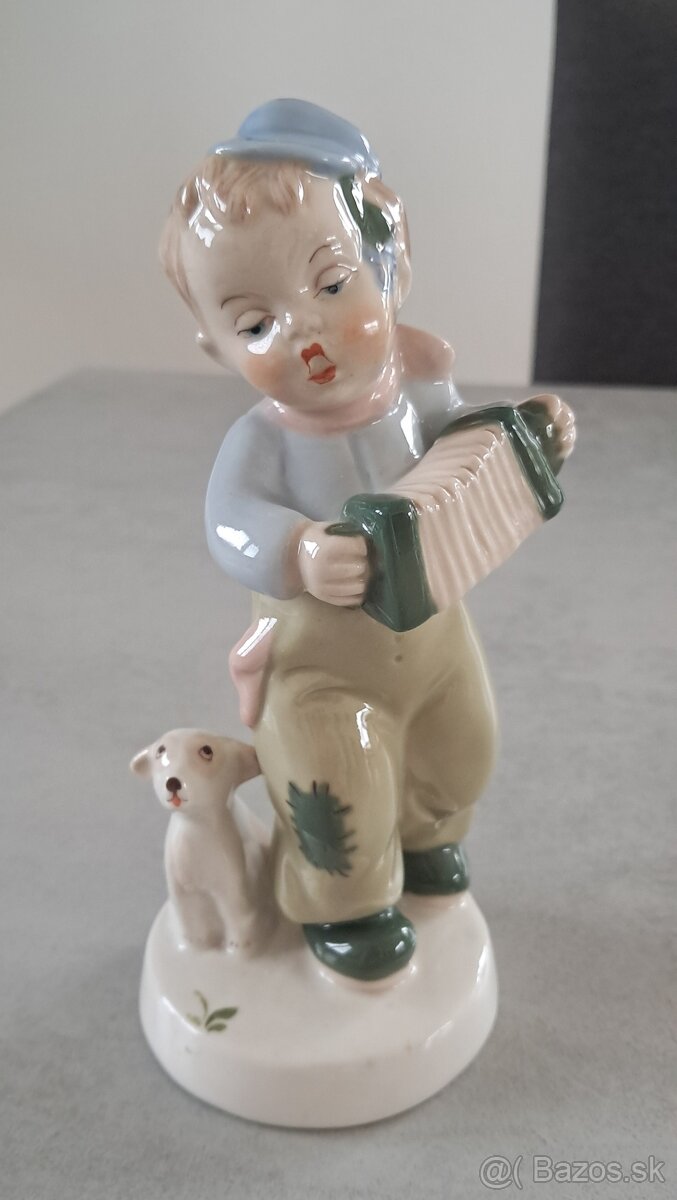 Ponúkam starožitnú porcelánovú sošku - Chlapec s harmonikou.
