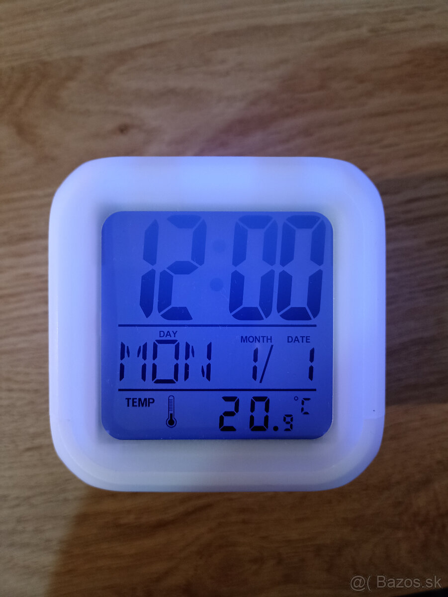 Predám dva farbu meniace budíky. Plynulo menia farbu od bielej cez modrú, zelenú, žltú, oranžovú, červenú. Je len na Vás, či si nastavíte, aby budík svietil a menil farbu stále, alebo len pár sekúnd po tom, ako ho stlačíte.