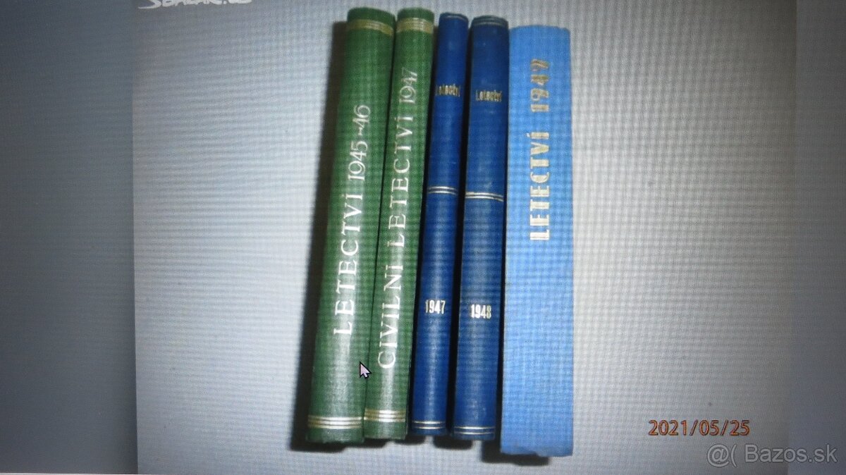 Nabízím poválečné svázané časopisy o letectví za 700Kč. Druhá zleva je prodaná. Obsahují také letecké snímky z bombardování Prahy.