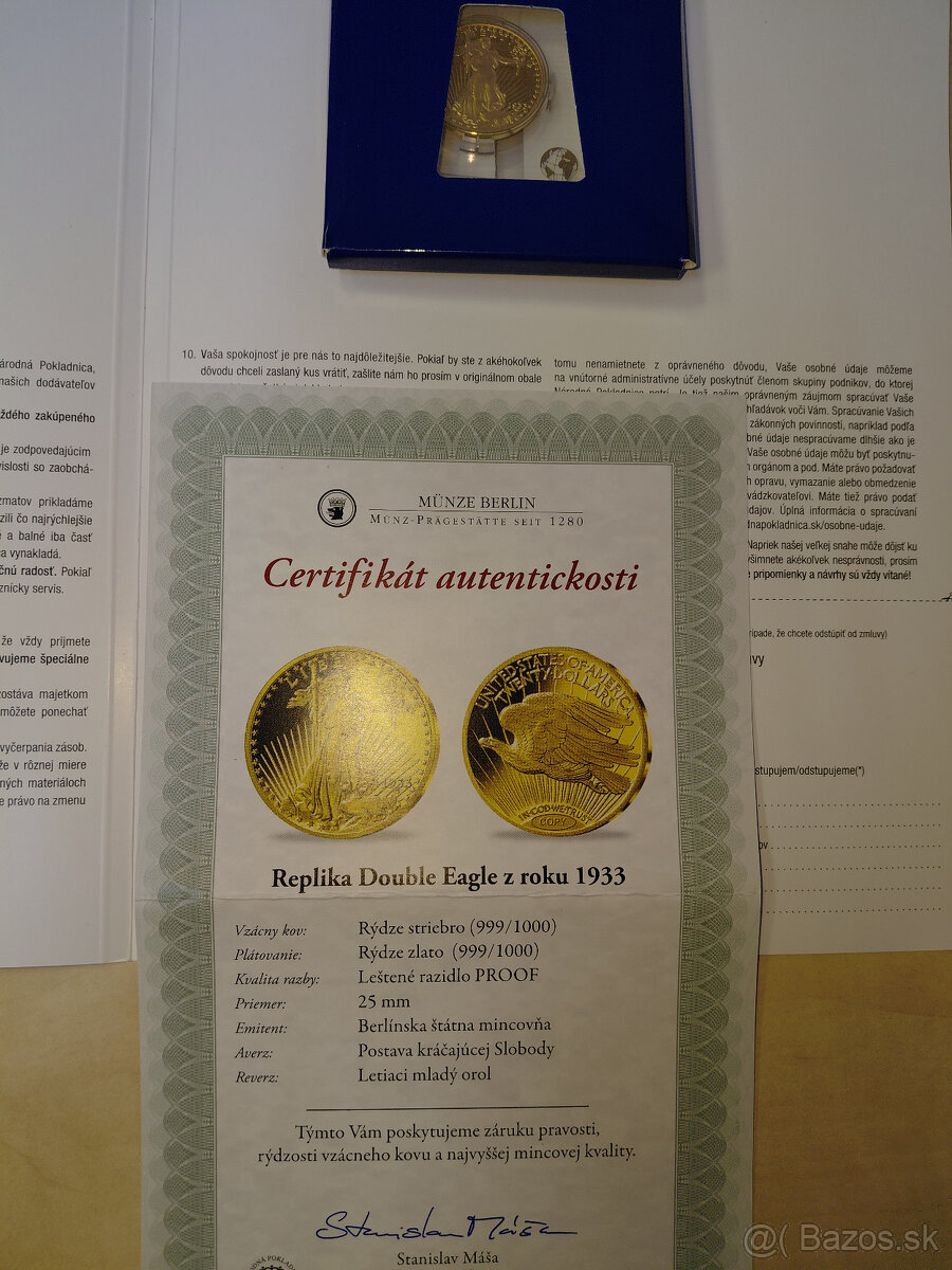 strieborná minca "Double Eagle" pozlátená