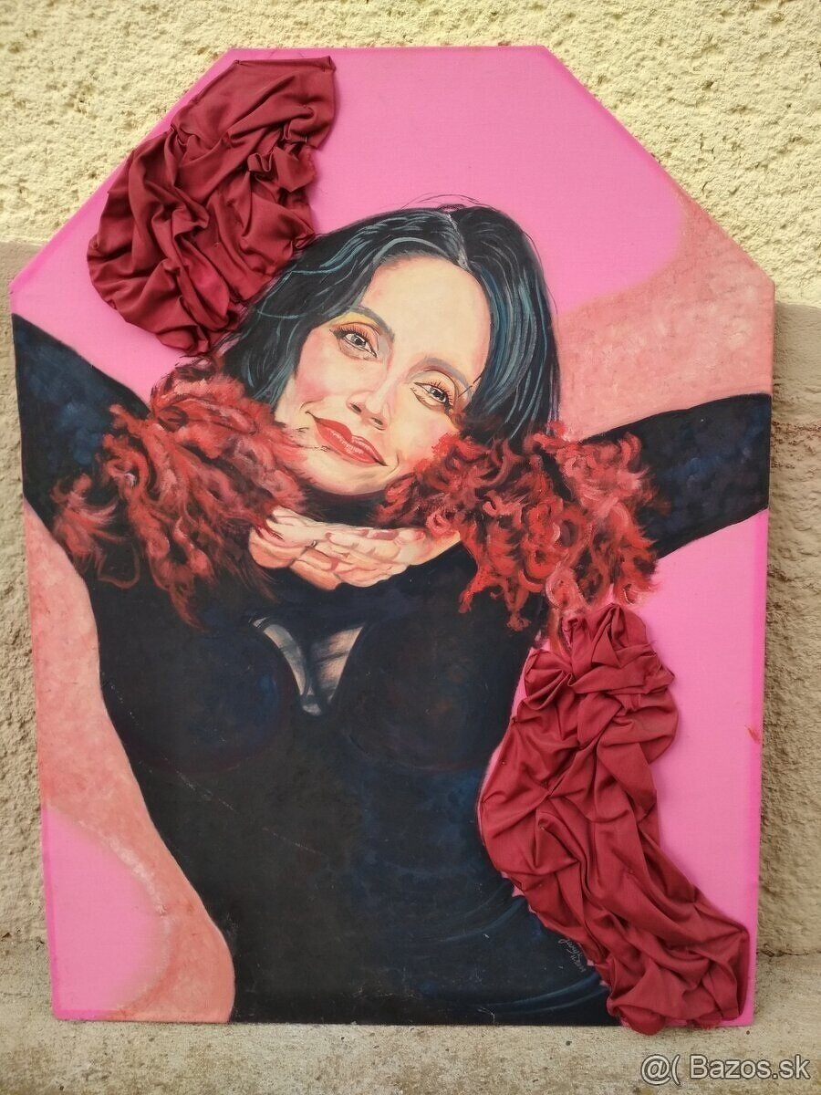 Predam maloany obraz portrét ženy. Podoba sa na Lucie Bílá. Podpis: Jaryk H. 2001. Rozmer: 80x60cm.