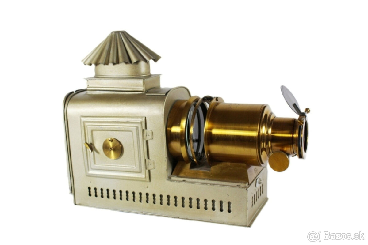 ponúkam na predaj vzácnu starožitnú Laternu Magicu zo začiatku dvadsiateho storočia v pôvodnom stave.značená Trade Mark London Made,established 1816.mosadz je vo veľmi dobrom stave,iba s drobnými poškodeniami.vo vnútri kompletný mechanizmus s objímkou a káblom.celková šírka je 44 cm a výška 34 cm.po prijatí platby na účet pošlem.možné osobné prevzatie v okrese Topoľčany.na prípadné dotazy rád zodpoviem.kontaktujte ma prosím cez formulár,číslo je vymyslené.ďakujem
